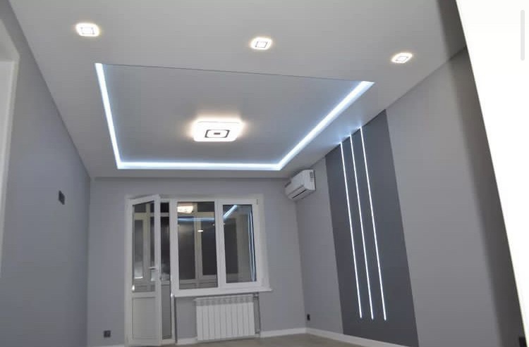 - Монтаж потолков (натяжные, подвесные, покраска).